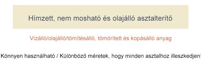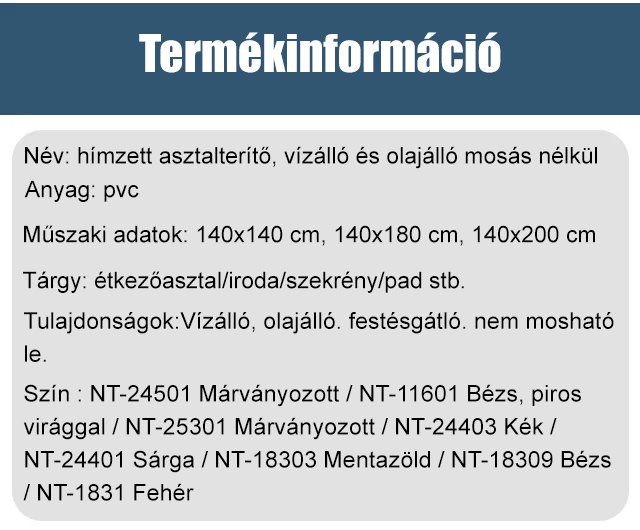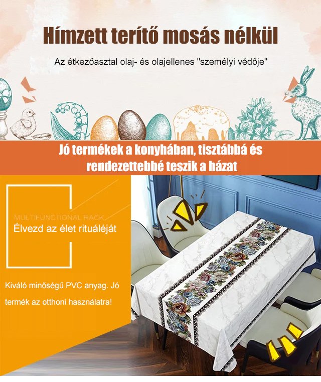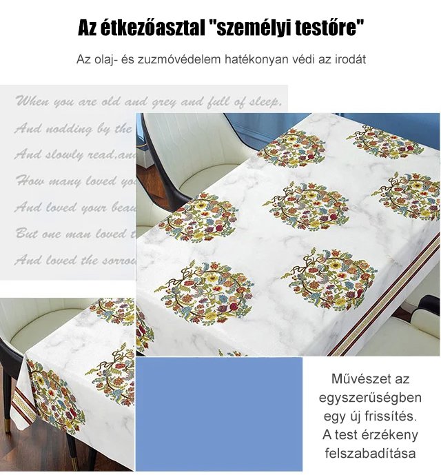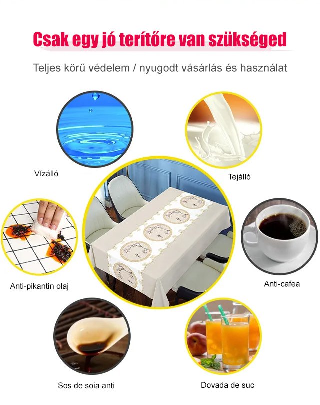 Hímzett mosásmentes vízálló és olajálló terítő