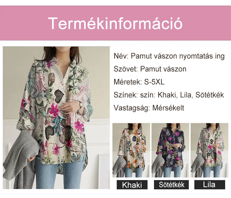 Pamut vászon nyomtatás laza ing